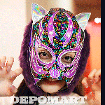 オオヤ製・使用済・レインボースパンコール生地(二重)・特殊合皮・グレーボア・ラインストーン加工・サイン・日付・着用写真付 2025年 10/29・新宿FACE「MARIGOLD MASK FIESTA2025」使用