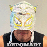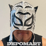 オオヤ製・使用済・レインボースパンコール生地(二重)・特殊合皮・グレーボア・ラインストーン加工・サイン・日付・着用写真付 2025年 10/29・新宿FACE「MARIGOLD MASK FIESTA2025」使用